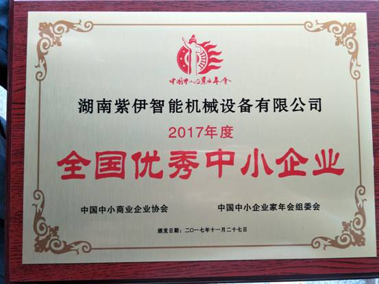 2017年11月27日--湖南紫伊智能機(jī)械設(shè)備有限公司榮獲“2017年度 全國(guó)優(yōu)秀中小企業(yè)”榮譽(yù)稱號(hào);并作為中國(guó)中小商業(yè)企業(yè)協(xié)會(huì)“雙百優(yōu)秀企業(yè)”受邀參加在北京人民大會(huì)堂舉辦的年會(huì)和頒獎(jiǎng)活動(dòng)。紫伊智能高層領(lǐng)導(dǎo)在人民大會(huì)堂榮幸獲得“全國(guó)政協(xié)常委兼副秘書長(zhǎng)、民革中央專職副主席 何丕潔;九三學(xué)社中央常委兼辦公廳主任、九三學(xué)社中央社會(huì)服務(wù)部部長(zhǎng) 徐國(guó)權(quán)”等國(guó)家領(lǐng)導(dǎo)的親切接見與關(guān)懷!